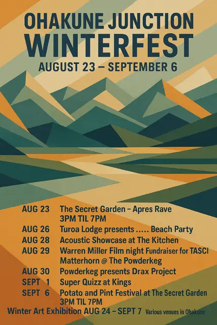 Thames Street Thames Street, OhakuneDust off your retro ski gear, neon outfits, and vintage threads—it’s time to step back in time for Retro Day at Ohakune Junction! This is your chance to relive the good old days, whether you’re rocking ‘80s ski suits, ‘90s grunge, or classic après-ski vibes. Watch out for the Retro Police handing out fines for […]